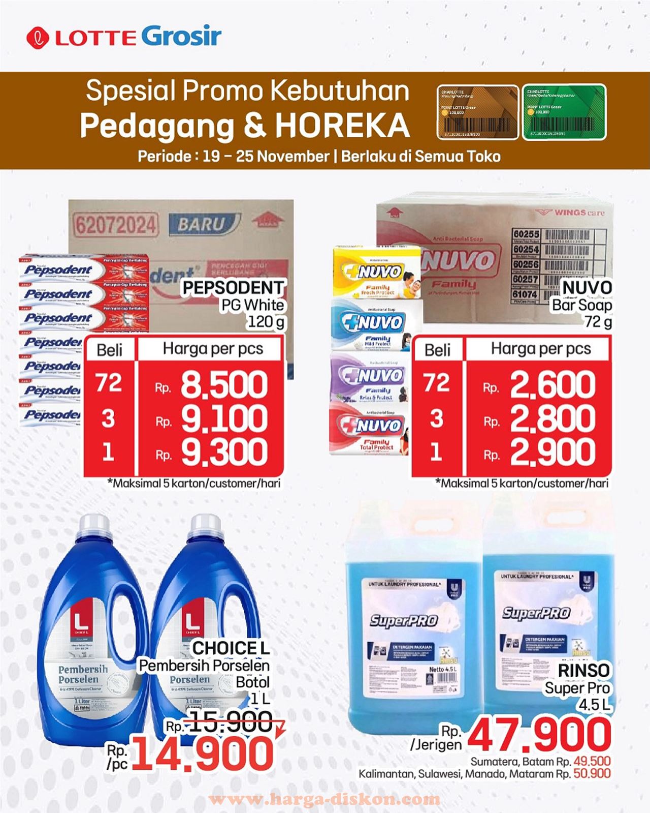 Katalog Lotte Grosir Mingguan Terbaru. Promo berlaku di semua toko (gambar 1 - 5) untuk member hijau dan coklat).